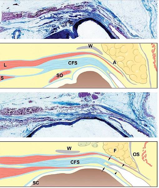 我們上眼皮的構造,很像一個滑軸,眼睛上方附載一個懸掛物,以利於眼睛睜開與閉合。聯合筋膜鞘就是一個連結「提上眼瞼肌」和「上直肌」相互融合的鞘膜。