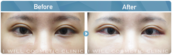 手術後三天內較腫脹,但傷口位於眼尾,縫線又與睫毛顏色與細度接近,一般不容易被發現開刀切口。
