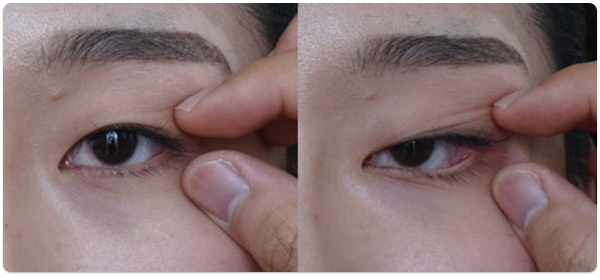因縫線靠近眼尾眼瞼結膜交接處,在拆線前會有些許異物感,可點眼藥水滋潤眼睛,7-10天拆線後即可復原。