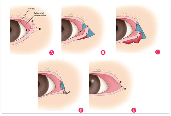 開眼尾手術的方法是於外眼角稍做切開,並精細的規劃出小小的三角結膜皮瓣後,將結膜皮瓣與皮下組織剝離、做轉移形成新的外眼角,必要時可將加強固定於骨膜之上,穩定眼尾的長度,最後完成傷口縫合。術後讓眼睛可有向外側延長2-3mm的效果。眼尾切開的疤痕較不明顯,一段時間後大概都無法察覺。