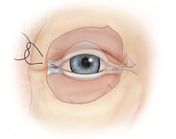 如果眼瞼是比較鬆弛的,這時會建議做下眼瞼加強術,也就是外眥加強固定術(lateral canthopexy),此種方式是不破壞原外眥韌帶接合處,僅加強周邊組織。